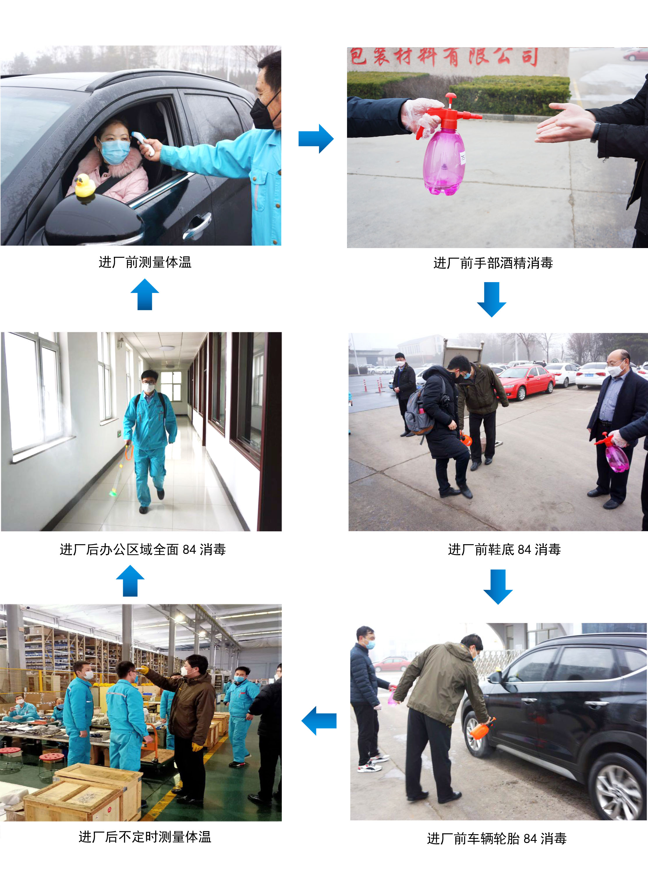 除了要求進(jìn)廠人員測(cè)體溫、戴口罩、手部酒精消毒外;還利用臭氧發(fā)生器每天對(duì)餐廳、辦公區(qū)域、宿舍等進(jìn)行定時(shí)消毒;主要出入口設(shè)置84浸泡鞋底消毒區(qū)域;對(duì)進(jìn)廠車輛輪胎、駕駛室門把手、方向盤等酒精消毒;更換考勤方式,采用非接觸式藍(lán)牙打卡;取消集體住宿,對(duì)于復(fù)工人員實(shí)行“單人間”住宿管理;食堂延長(zhǎng)供餐時(shí)間,分批就餐,一人一桌,全部朝一個(gè)方向就座;供餐、用餐區(qū)域定期消毒(早、中、晚用餐前后);生產(chǎn)車間采取輪班制、每天兩次測(cè)體溫;各辦公室配備醫(yī)用酒精各自消毒等措施。公司不遺余力的采取各種防護(hù)措施,努力恢復(fù)企業(yè)產(chǎn)能,在思想上、行動(dòng)上高度一致,抗疫情保生產(chǎn),嚴(yán)要求高質(zhì)量的生產(chǎn)出安全、優(yōu)質(zhì)的產(chǎn)品,同時(shí)提供優(yōu)質(zhì)的售后服務(wù),及時(shí)解決乳品、飲料生產(chǎn)加工企業(yè)的生產(chǎn)問(wèn)題,保障乳品、飲料生產(chǎn)企業(yè)正常生產(chǎn)出優(yōu)質(zhì)的營(yíng)養(yǎng)產(chǎn)品,滿足廣大消費(fèi)者的營(yíng)養(yǎng)需求。